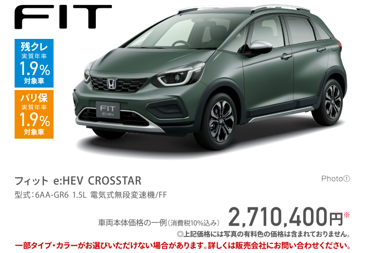 フィット Photo①:フィット e:HEV CROSSTAR(FF) ボディーカラーはボタニカルグリーン・パール(有料色:33,000円高)