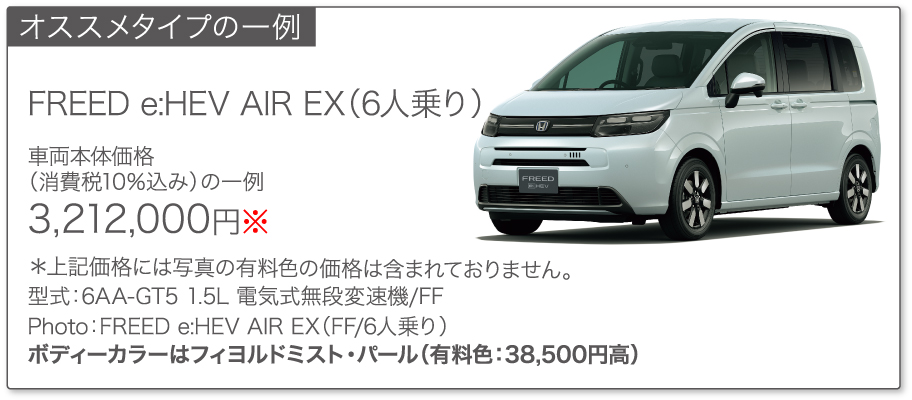 ※ 車両本体価格はHonda Cars 青森の一例です。価格は各販売会社が独自に決めております。詳しくはお近くの販売会社にお問い合わせください。価格は消費税(10%)込みの価格です。車両本体価格には、消費税以外の税金、保険料、登録等に伴う諸費用、リサイクル料金は含まれておりません。