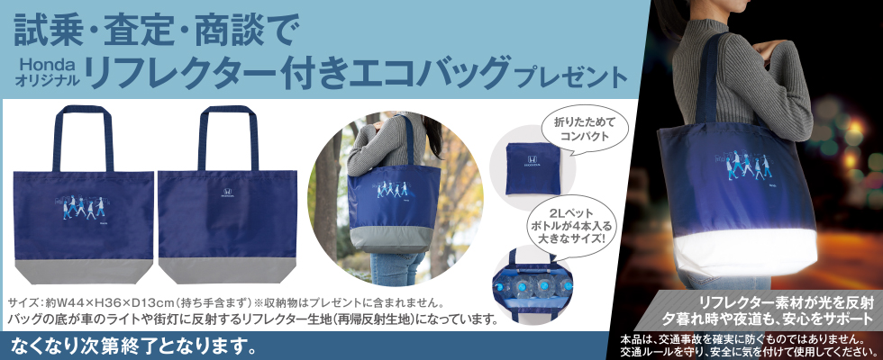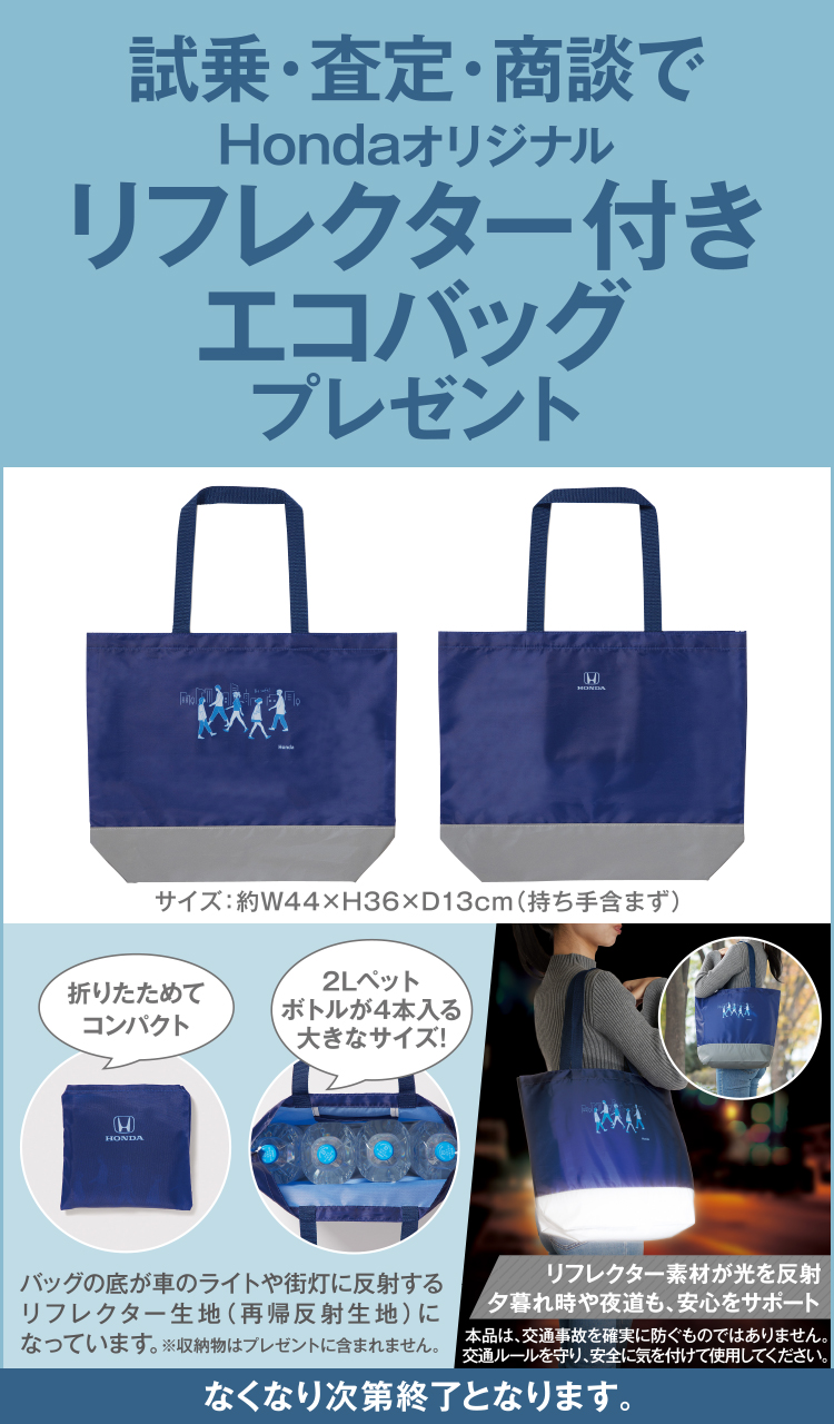 ●対象地区:愛知・三重・岐阜・静岡・富山・石川・福井県内のHonda Cars店 ●写真はイメージです。実物とは異なる場合がございます。 ●プレゼントはお一組様1つとさせていただきます。 ●プレゼントの数には限りがございますので、品切れの際はご容赦ください。 ●他のキャンペーンと併用できない場合がございます。 ●詳しくは販売会社までお問い合わせください。