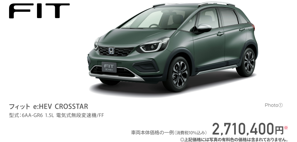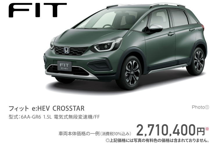 フィット Photo①:フィット e:HEV CROSSTAR(FF) ボディーカラーはボタニカルグリーン・パール(有料色:33,000円高)