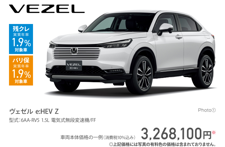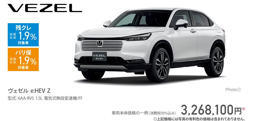 ヴェゼル Photo①:ヴェゼル e:HEV Z(FF) ボディーカラーはプラチナホワイト・パール(有料色:38,500円高)