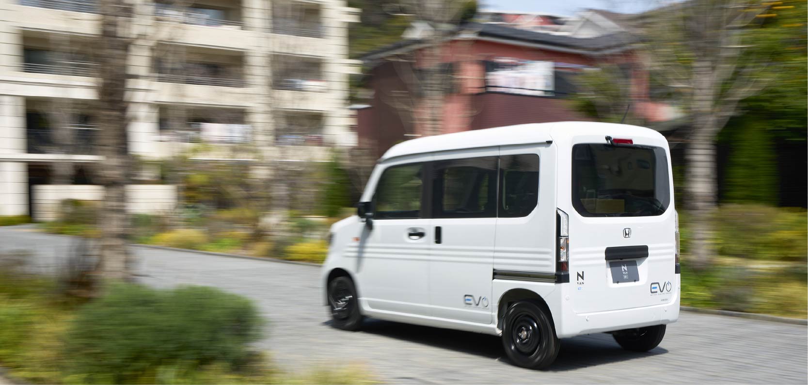 Photo: N-VAN e: L4 ボディーカラーはタフタホワイトⅢ メーカーオプション(急速充電ポート(外部給電機能付〈高出力対応〉)+急速充電リッドオープンスイッチ)、ディーラーオプション(デカール EV、ウインドウプロテクションバー)装着車