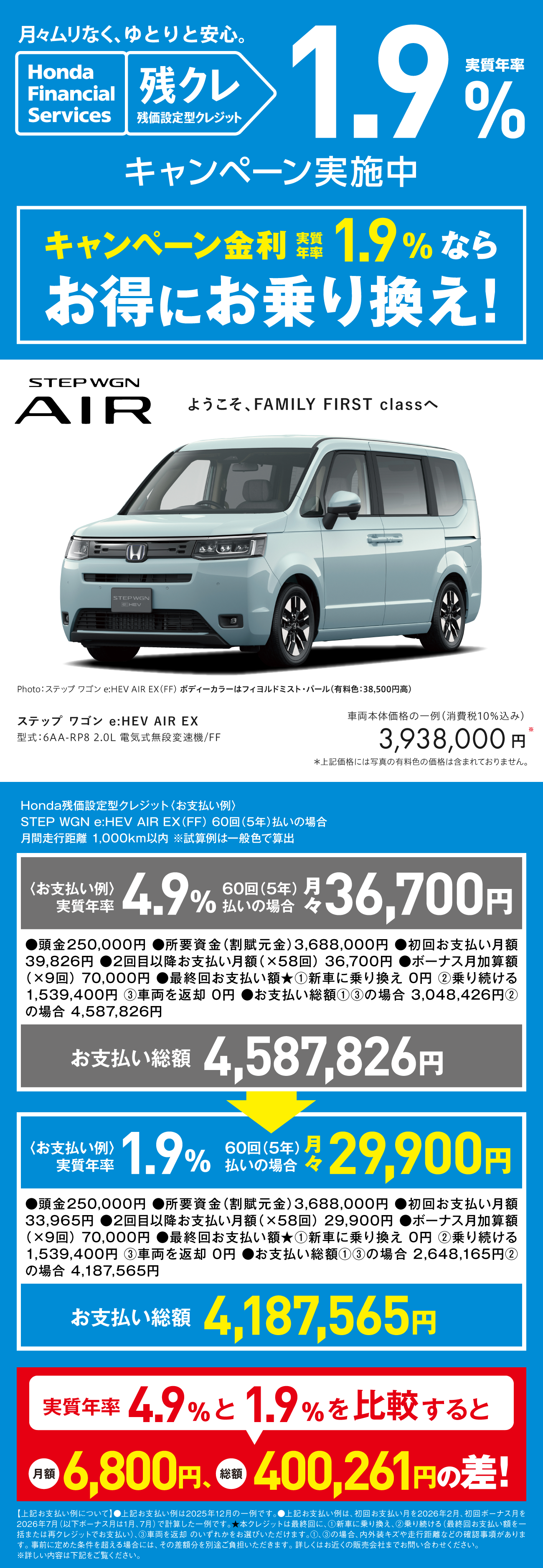 ※車両本体価格はHonda Cars 横浜の一例です。販売価格は販売会社が独自に決めておりますので詳しくはお近くの販売会社にお問い合わせください。
