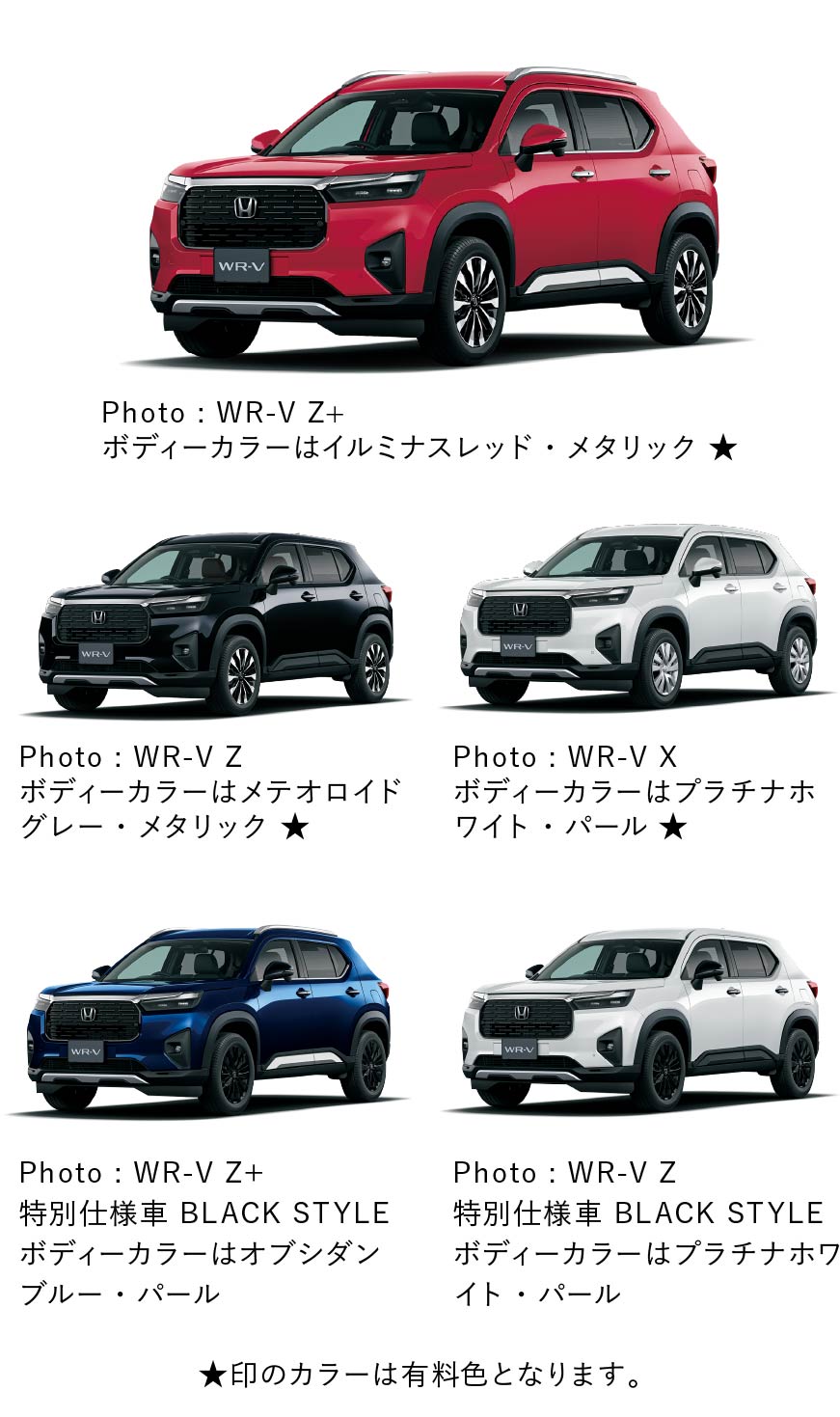 Photo 2点: WR-V Z+ 特別仕様⾞ BLACK STYLE ボディーカラーはオブシダンブルー・パール
