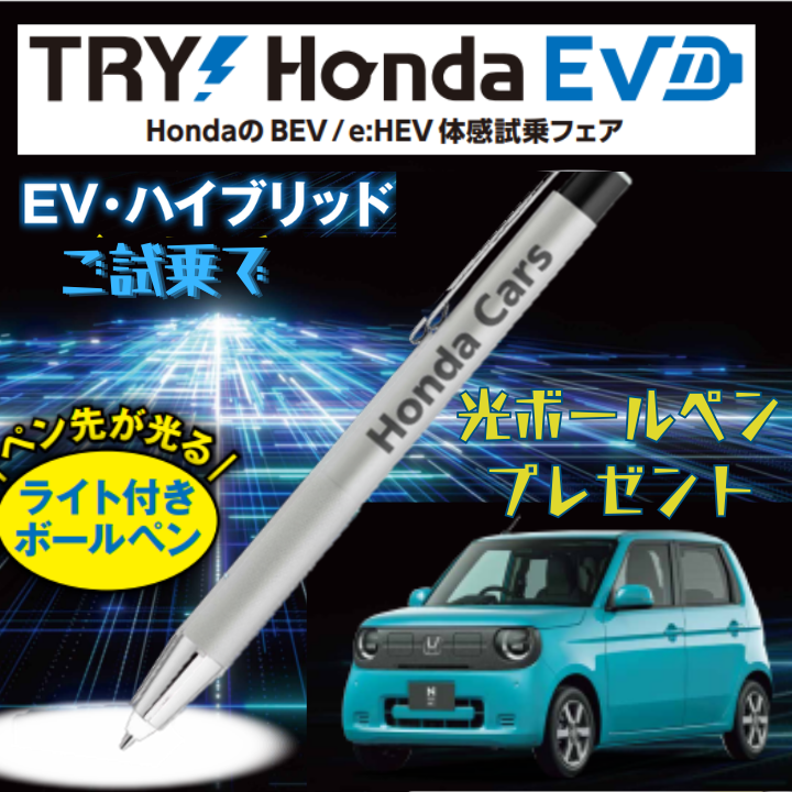 電気自動車・ハイブリッド車にご試乗の方に「光るボールペン」プレゼント!