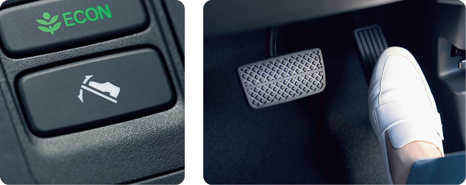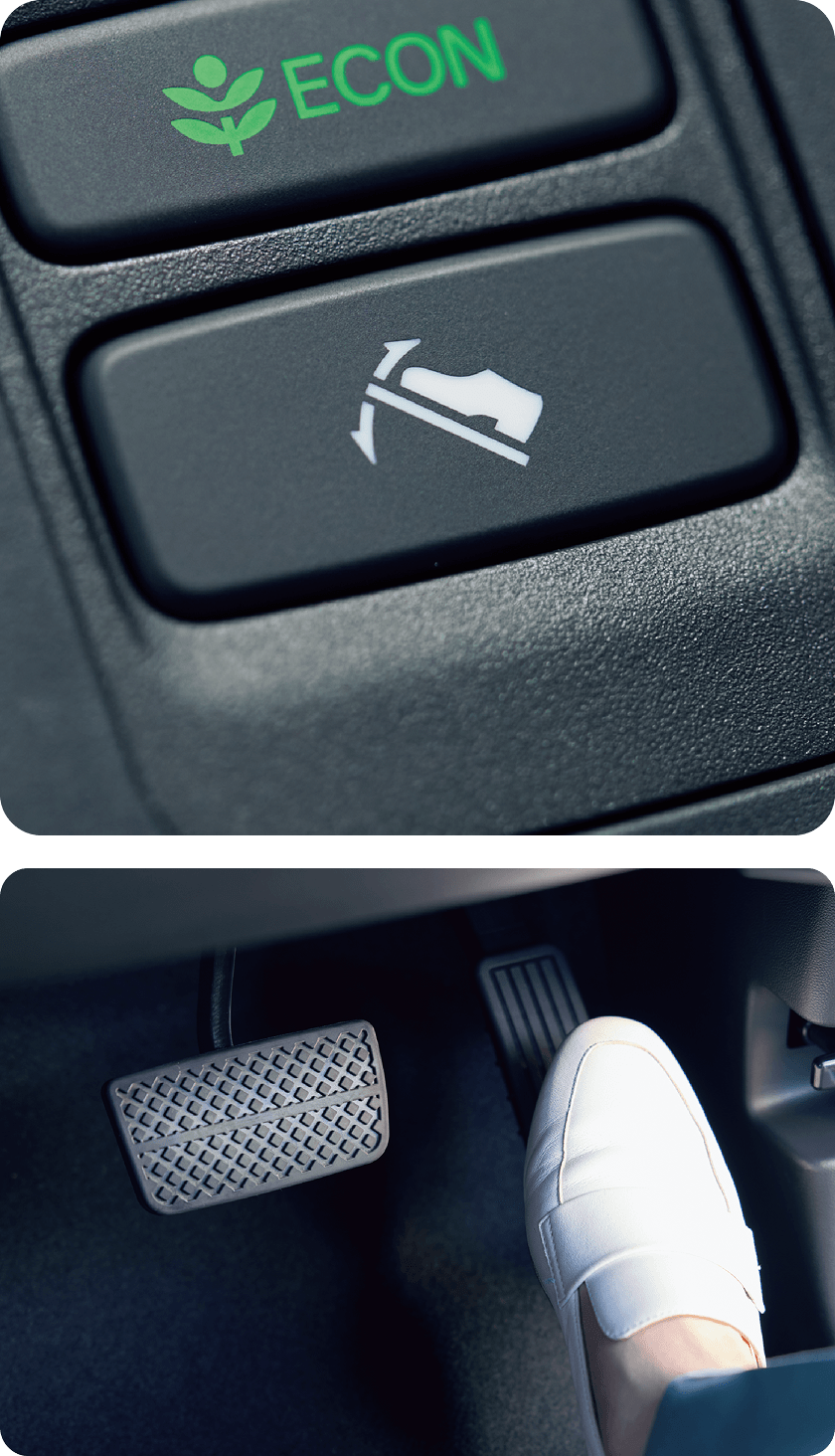 ボタンひとつでシングルペダルコントロールに切り替え。ブレーキペダルの踏みかえなしで加減速をコントロール