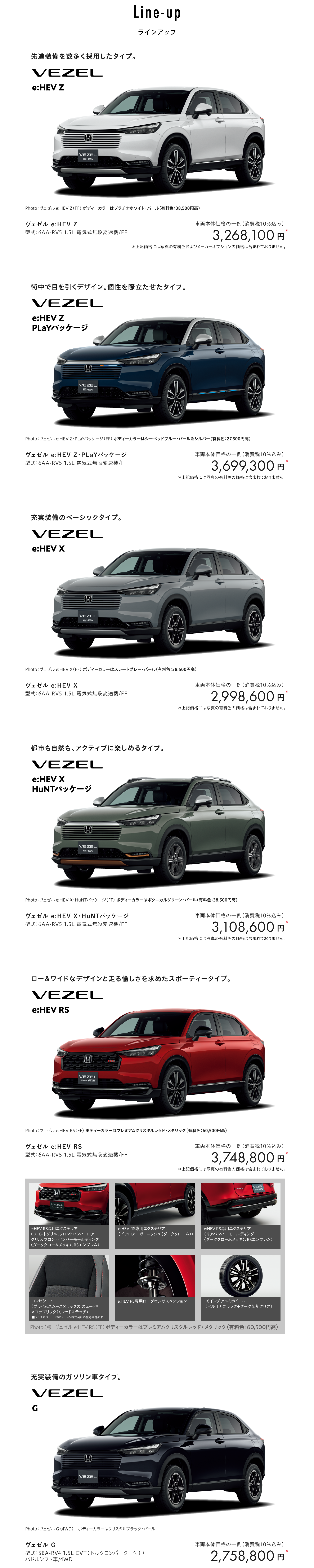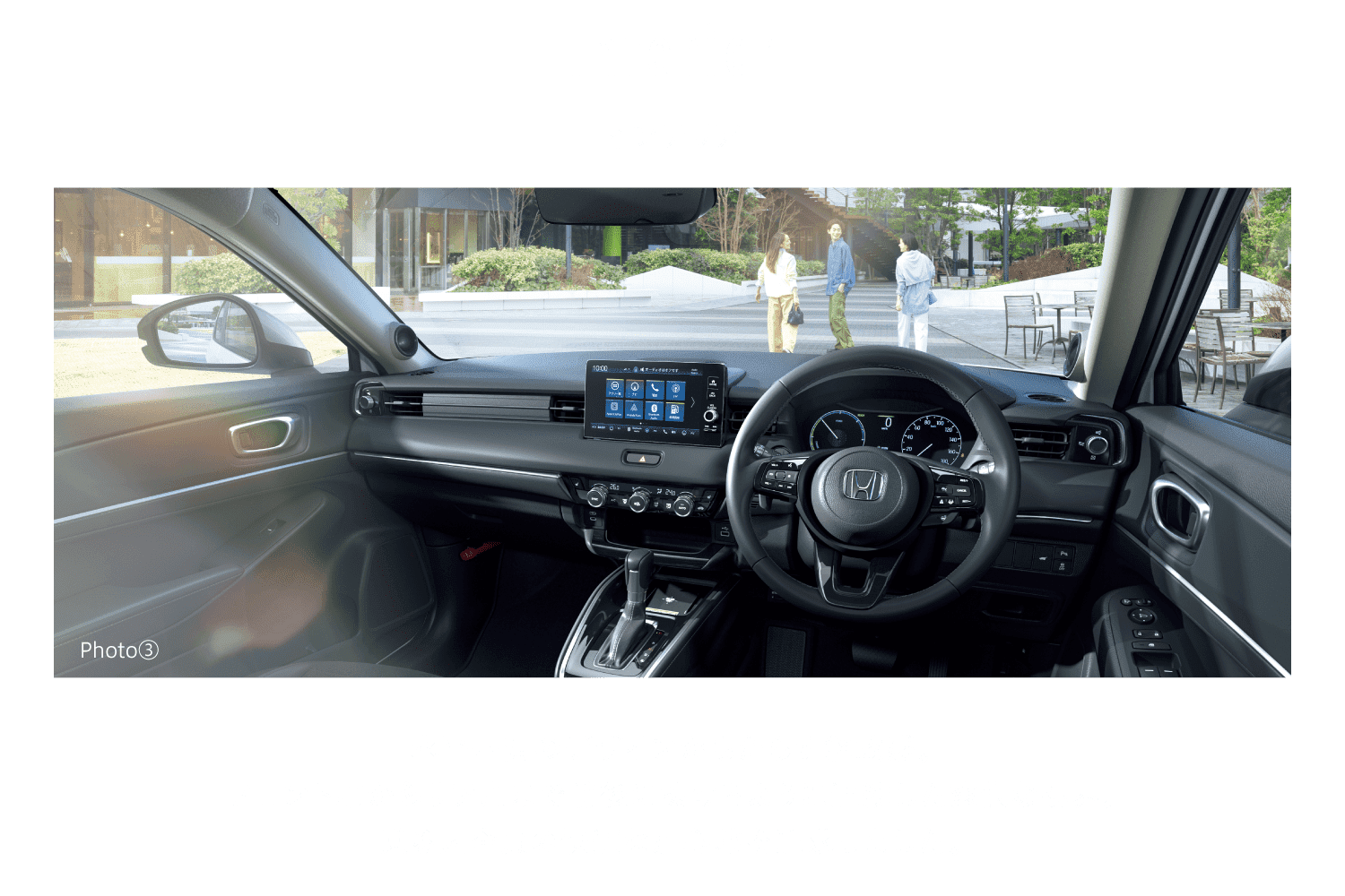 Photo①③:ヴェゼル e:HEV Z(FF) ボディーカラーはプラチナホワイト・パール(有料色:38,500円高)メーカーオプション(後退出庫サポート、Honda CONNECTディスプレー+ETC2.0車載器〈ナビゲーション連動〉、ワイヤレス充電器、マルチビューカメラシステム、プレミアムオーディオはセットで374,000円高)装着車 ■メーター類は撮影のため点灯。■画面はハメコミ合成。 Photo②:ヴェゼル e:HEV Z(FF)ボディーカラーはプラチナホワイト・パール(有料色:38,500円高)メーカーオプション(後退出庫サポート、Honda CONNECTディスプレー+ETC2.0車載器〈ナビゲーション連動〉、ワイヤレス充電器はセットで231,000円高)装着車 ●ETC2.0車載器を使用するには、別途決済用のETCカード、セットアップ作業(セットアップ費用)が必要となります。